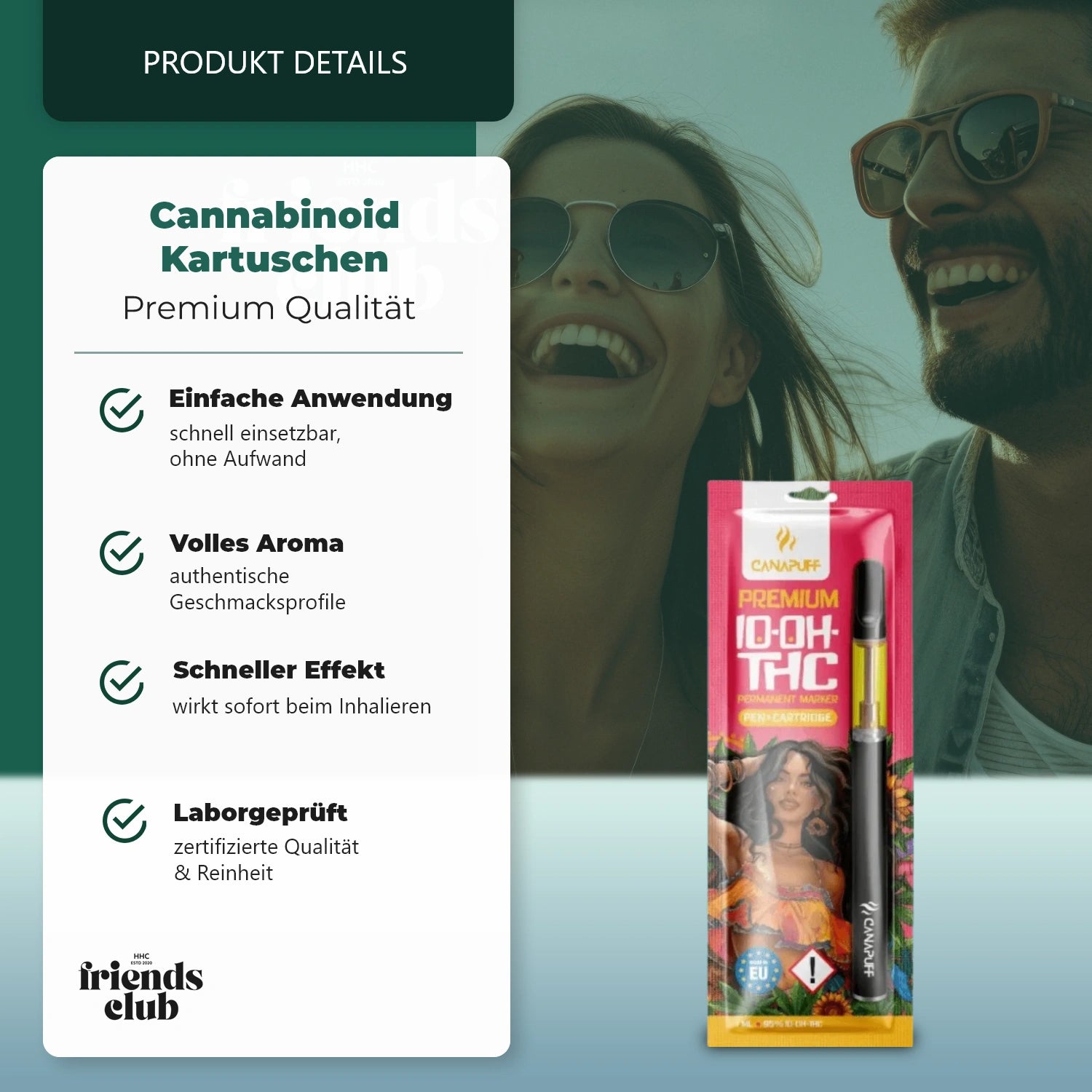 Podczas inhalacji kwiatowe nuty rozwijają się w bogate i zrównoważone doświadczenie, które zachwyca połączeniem słodkich i kwiatowych niuansów. Ten 10-OH-THC Pen oferuje Ci niepowtarzalny profil smakowy i zapewnia intensywne doznania sensoryczne.