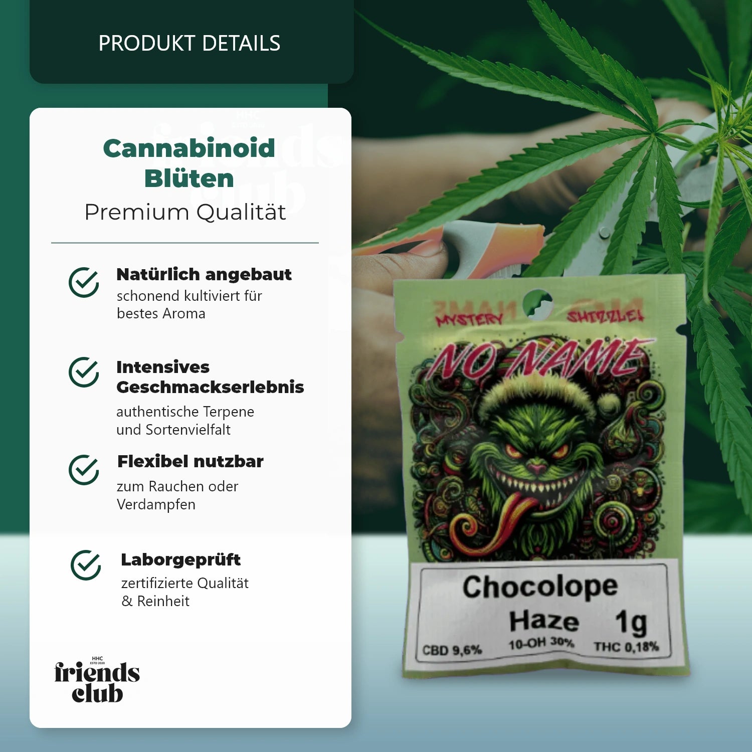 Descoperă 10-OH Flori Chocolope Haze - o varietate extraordinară cu un profil unic de canabinoizi. Această floare de înaltă calitate impresionează prin parfumul său intens, dulce-ciocolatiu, cu o notă de Haze.