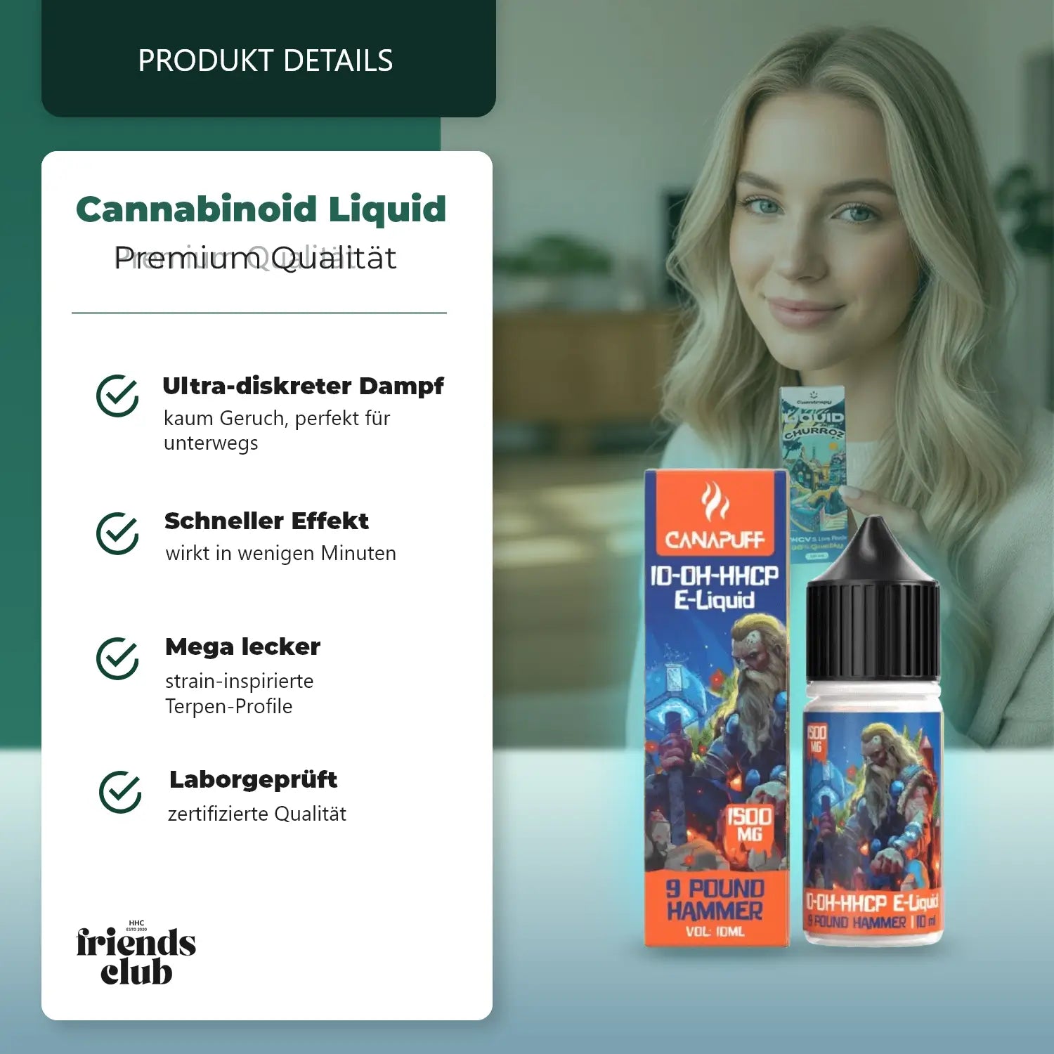 Lichidul conține 1.500 mg de 10-OH-HHCP într-o sticlă de 10 ml și impresionează prin calitatea superioară și fabricarea atentă. Perfect pentru toți cei care caută ceva special și pun preț pe o experiență intensă.