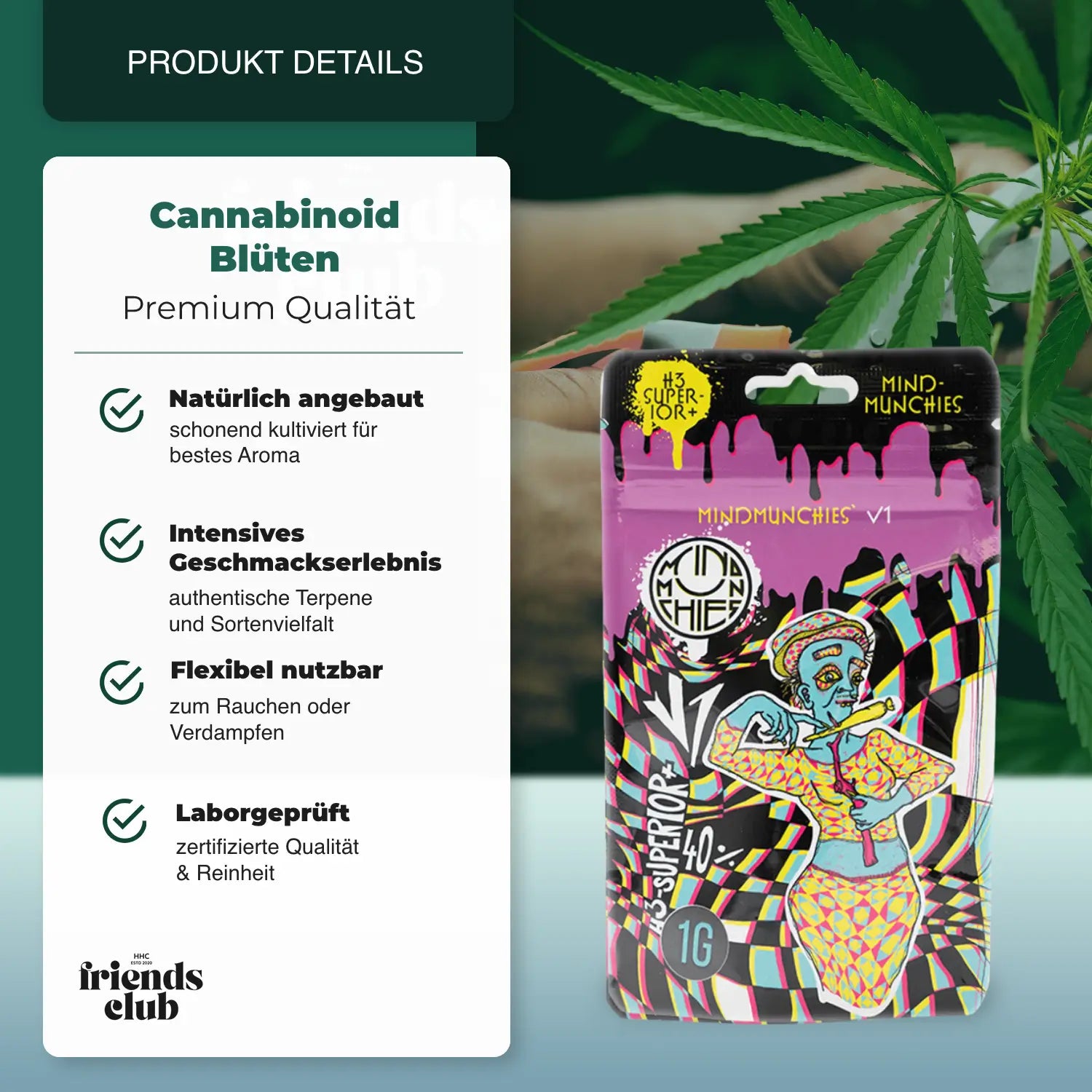 Cu tulpina „V1”, seria Mind Munchies stabilește un standard vizual și aromatic. Combinația dintre 40% H3 Superior+ și un design remarcabil transformă acest produs într-un adevărat punct de atracție pentru colecționari și pasionații de profiluri aromatice deosebite.