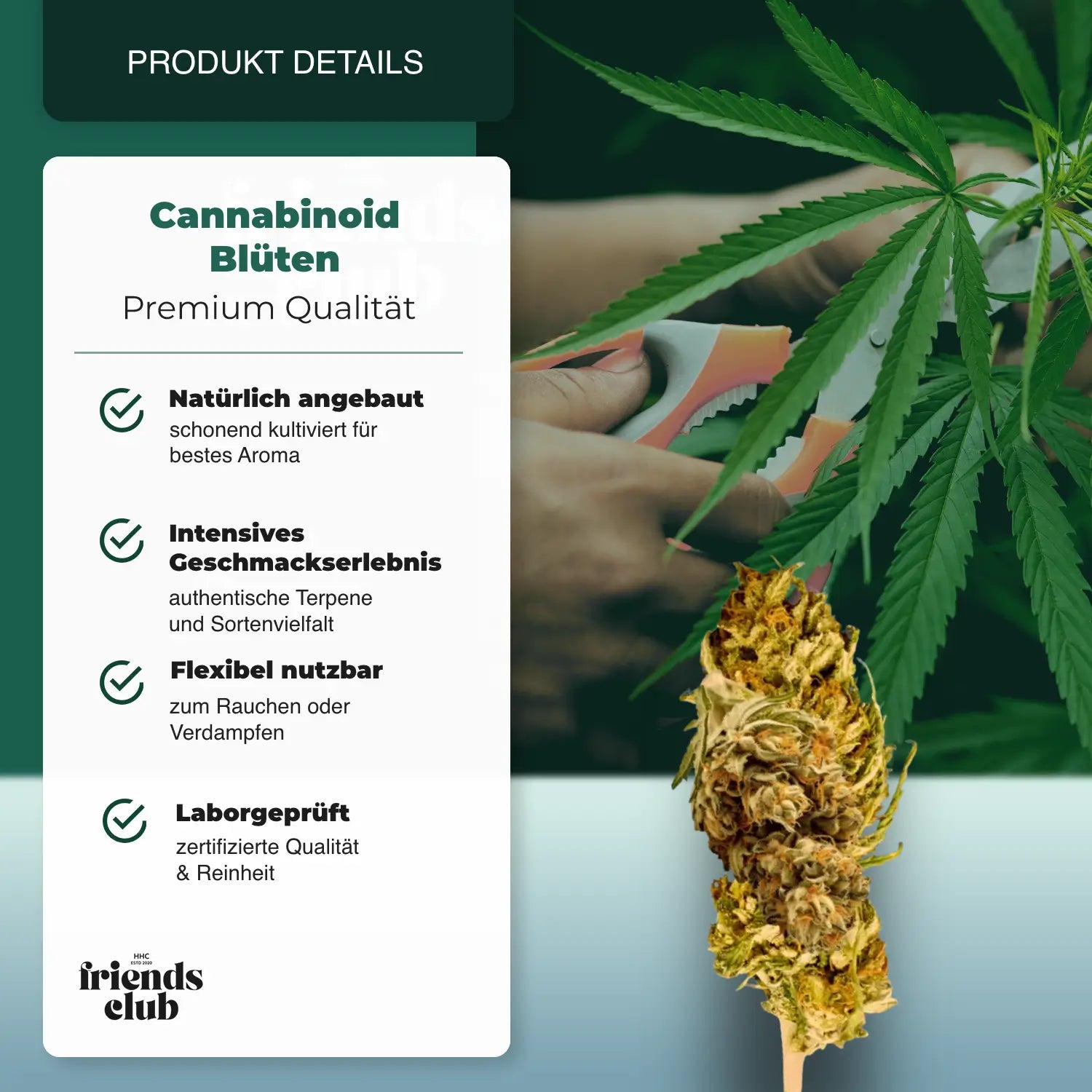 Cauți un produs PHC puternic? Atunci PHC Flori V1 este exact ceea ce îți trebuie! Cu un conținut de PHC de 25%, aduce un potențial considerabil - iar cu un conținut de THC sub 0,2%, rămâi în limitele legale.