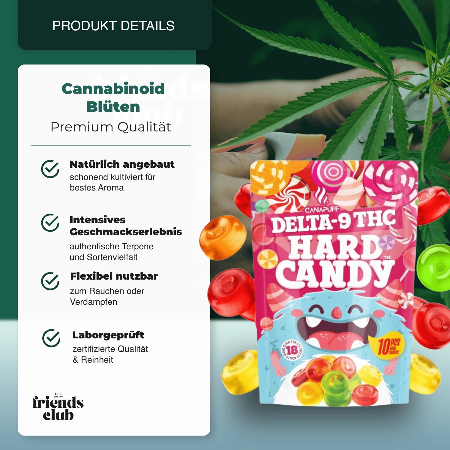 Cu Hard Candy Bonbons cu Delta-9 THC primești o combinație elegantă între arome intense de fructe și un produs modern de lifestyle. Aceste bomboane sunt destinate exclusiv colecționarilor, pentru parfumare sau decor și nu sunt destinate consumului.